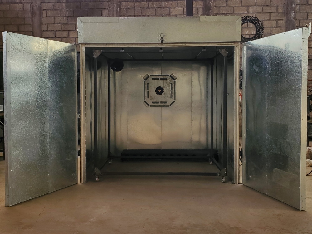 El horno de curado para pintura electrostática X4-03 alcanza una temperatura máxima de 240 Cº.